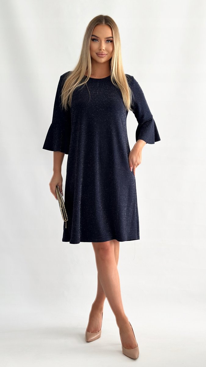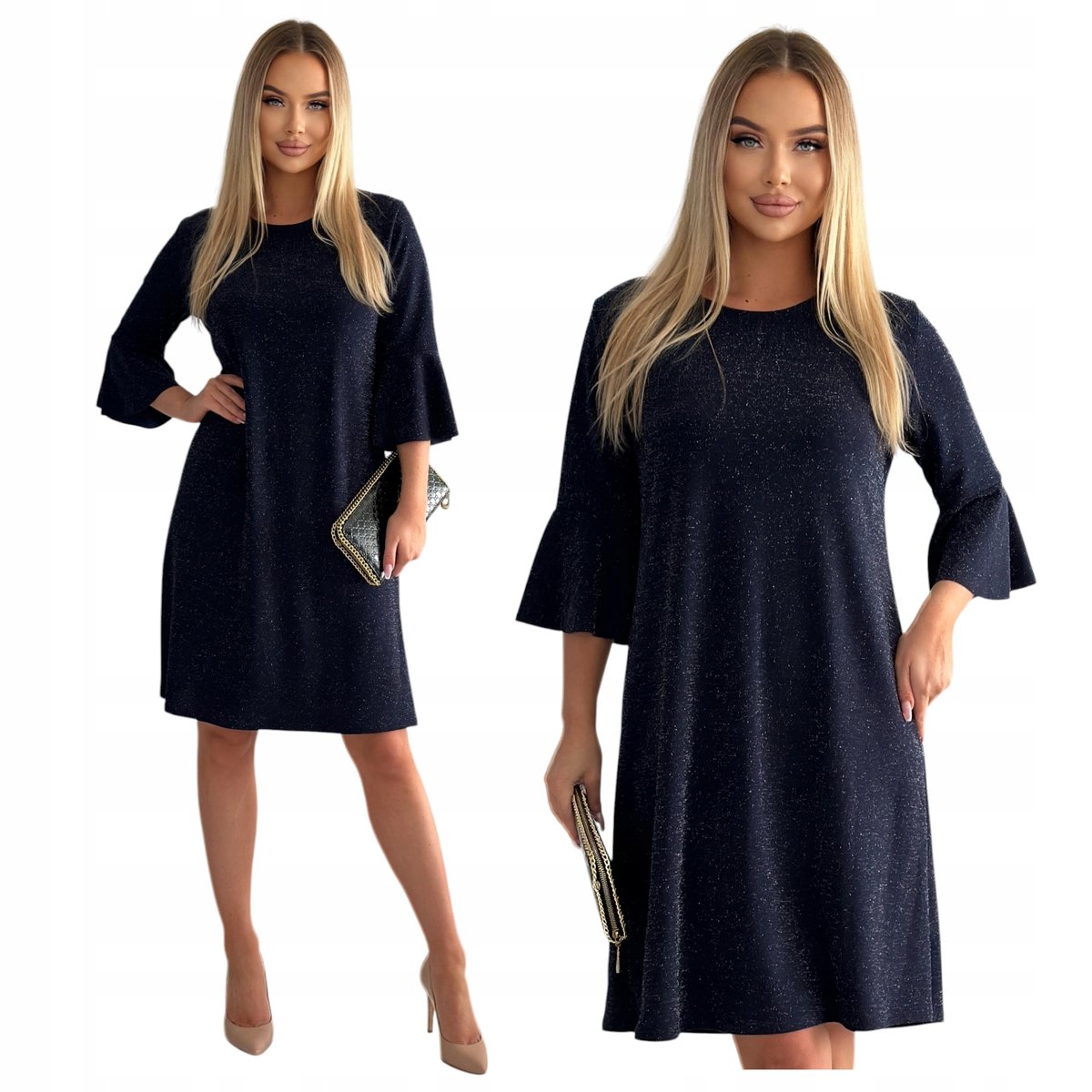 Właśnie zrecenzowałem Świecąca Granatowa Sukienka Falbanki Midi Brokat Sylwester Glam Rozmiar 38