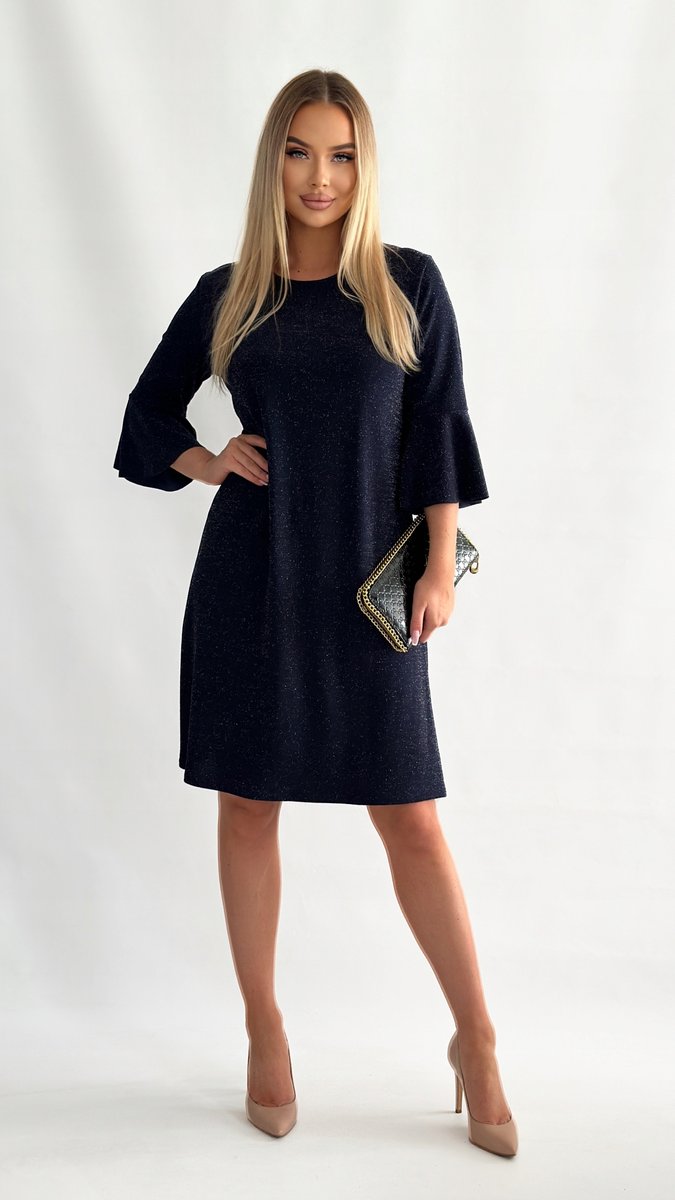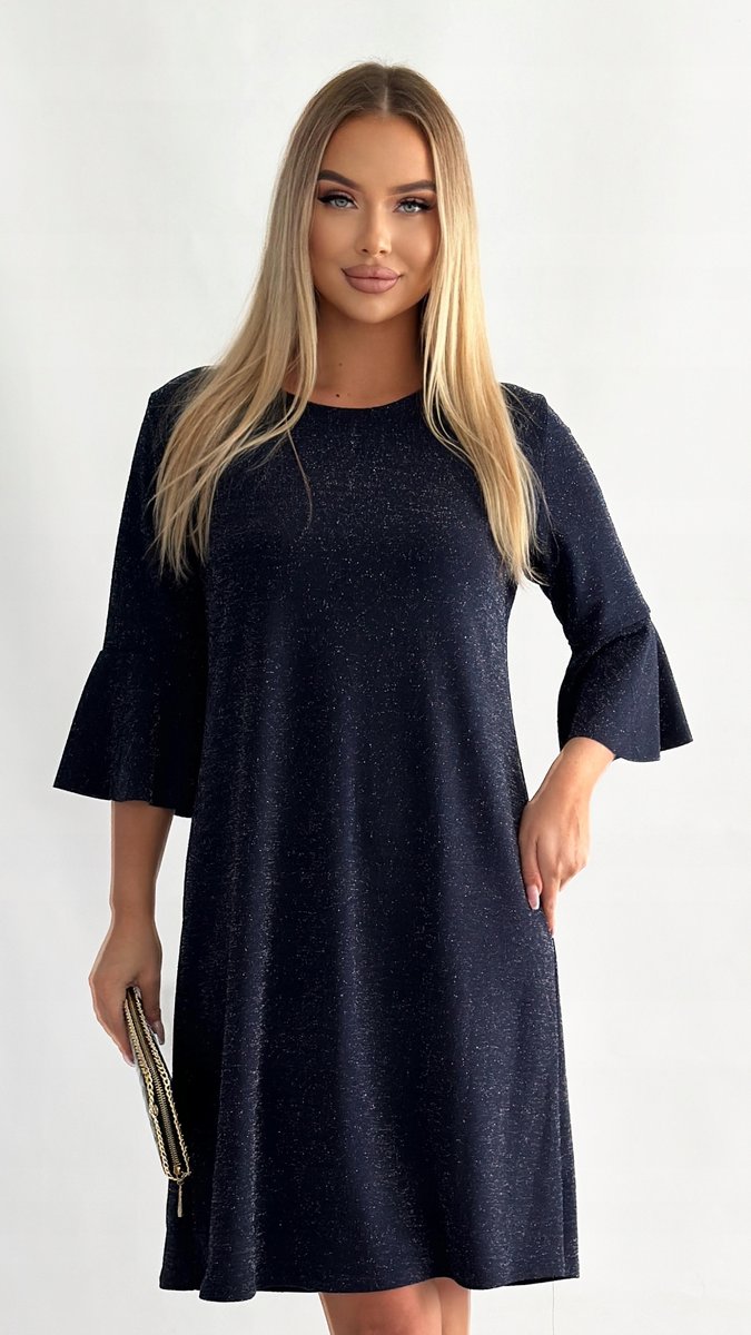 Właśnie zrecenzowałem Świecąca Granatowa Sukienka Falbanki Midi Brokat Sylwester Glam Rozmiar 40