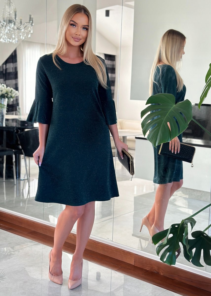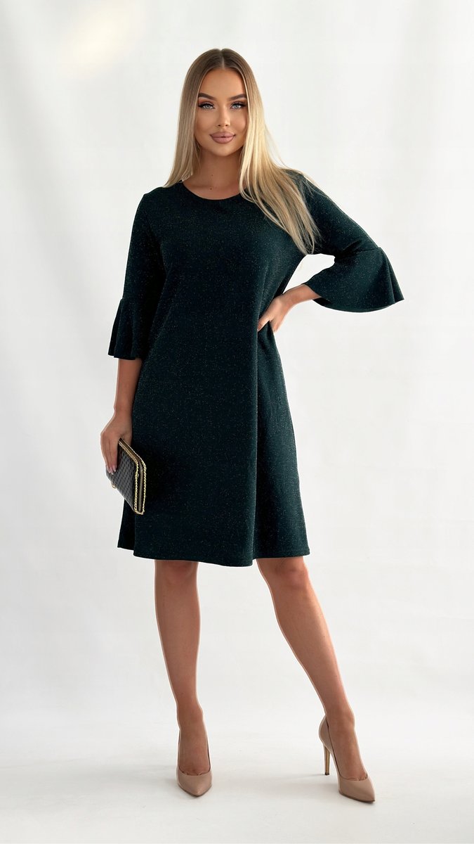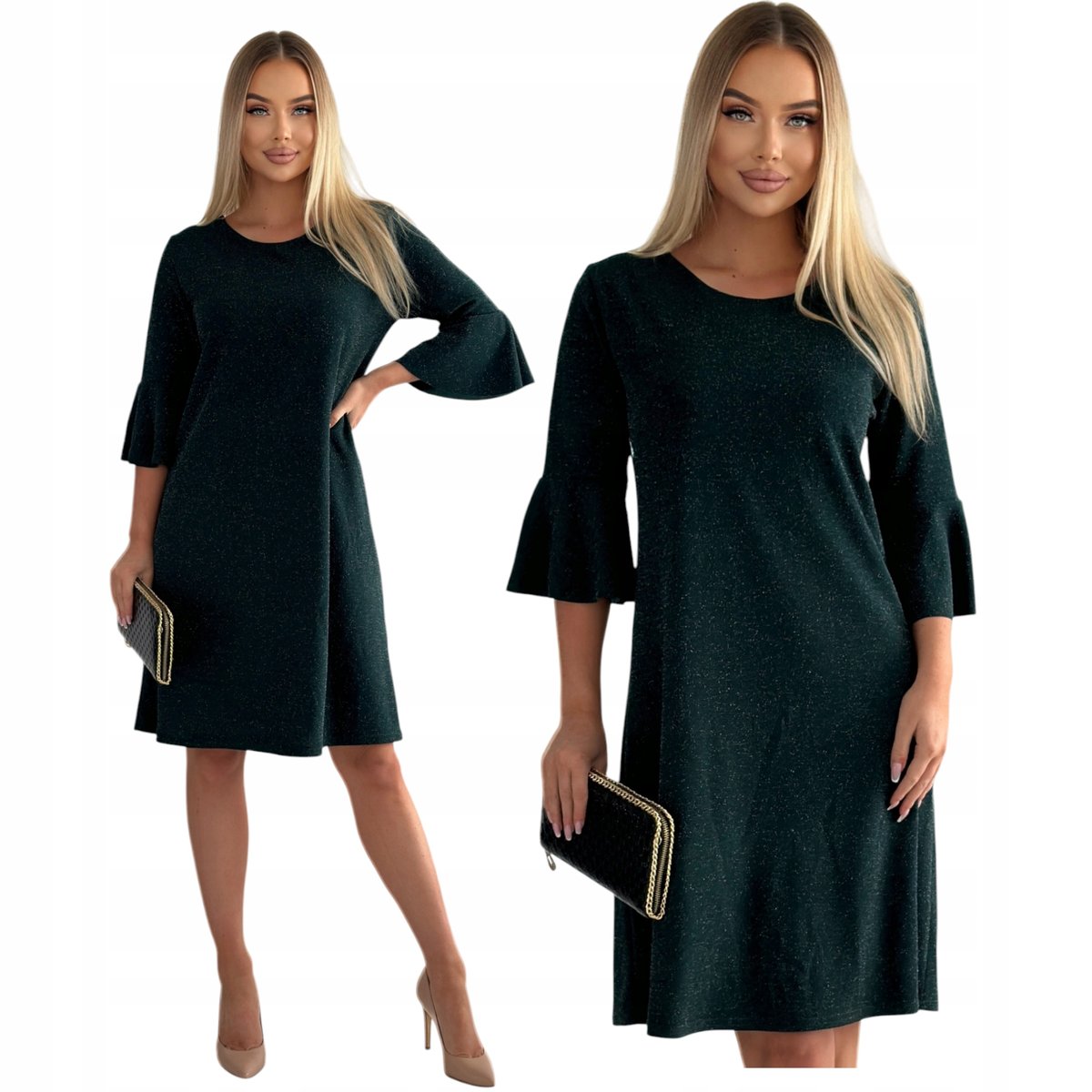 Właśnie zrecenzowałem Świecąca Zielona Sukienka Falbanki Midi Brokat Sylwester Glam Rozmiar 40