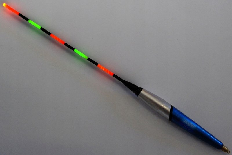 Spławik przelotowy LED firmy JAXON z podświetlaną antenką. Bardzo dobrze widoczny w nocy.