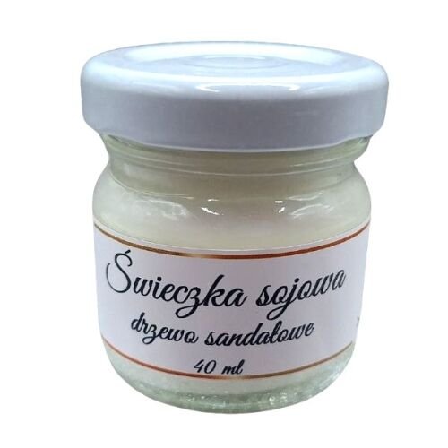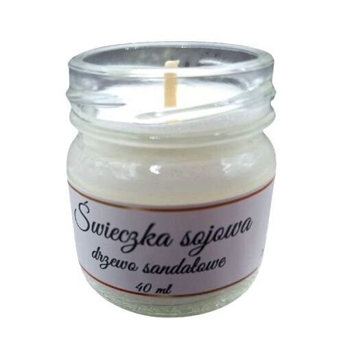Świeczka Sojowa Ręcznie Robiona Drzewo Sandałowe 40 ml. Biały Słoiczek