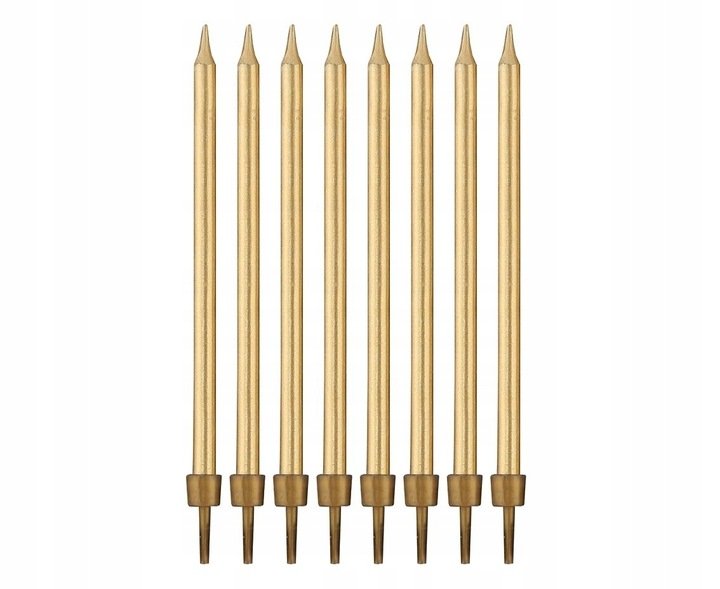 | Nazwa: | Świeczki urodzinowe ZŁOTE długie 12 cm 12 szt dekoracja na TORT URODZINY |