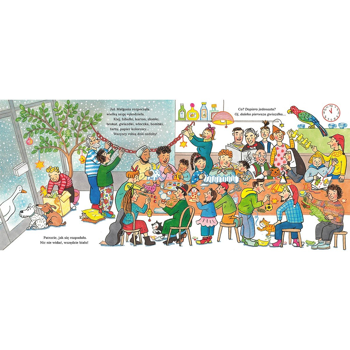 Wreszcie nadszedł wigilijny poranek! Tylko dlaczego ten czas tak strasznie się wlecze? Jak wytrzymać do wieczora i pierwszej gwiazdki? Mieszkańcy Czereśniowej mają pomysł: spędzą ten czas razem! Ktoś przyniesie barszcz z uszkami, ktoś inny – pierniczki, a jeszcze ktoś – materiały na świąteczne ozdoby. Będą kolędy, zabawa w śniegu i lepienie bałwana. A gdy się już ściemni – wspólny spacer do domów przez zasypaną śniegiem Czereśniową.