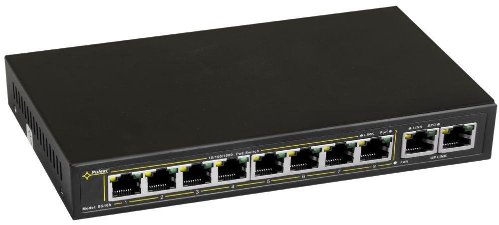 | Nazwa: | Switch 10 portowy gigabitowy Pulsar SG108 8xPoE + 2xUplink |