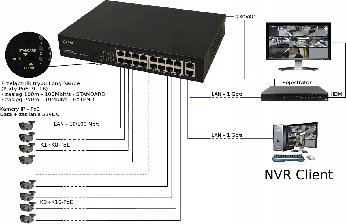 | Nazwa: | Switch 18 portowy Pulsar S116 16xPoE + 2xUplink 10/100/1000 |