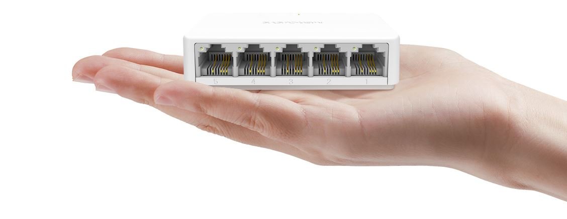 Pięć portów Ethernet 10/100Mb/s umożliwia szybką rozbudowę sieci przewodowej. MS105 jest w pełni kompatybilny z komputerami, drukarkami, kamerami IP, smart TV, konsolami do gier oraz z wieloma innymi urządzeniami. Właśnie dlatego przełącznik ten idealnie sprawdzi się w domach czy niewielkich biurach.