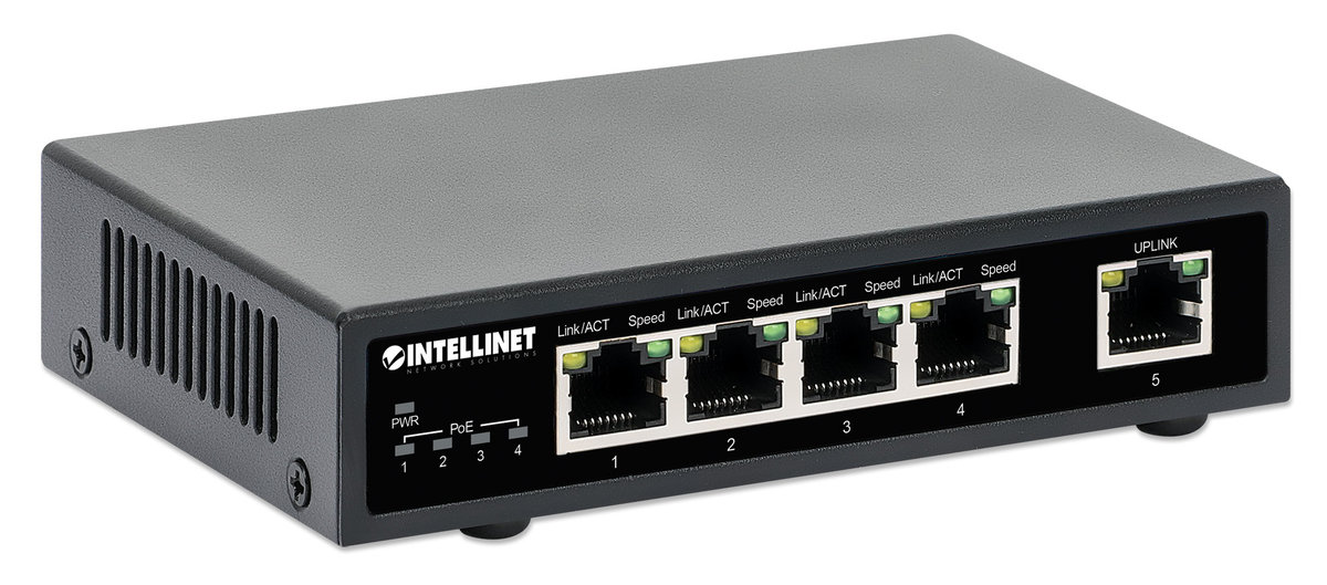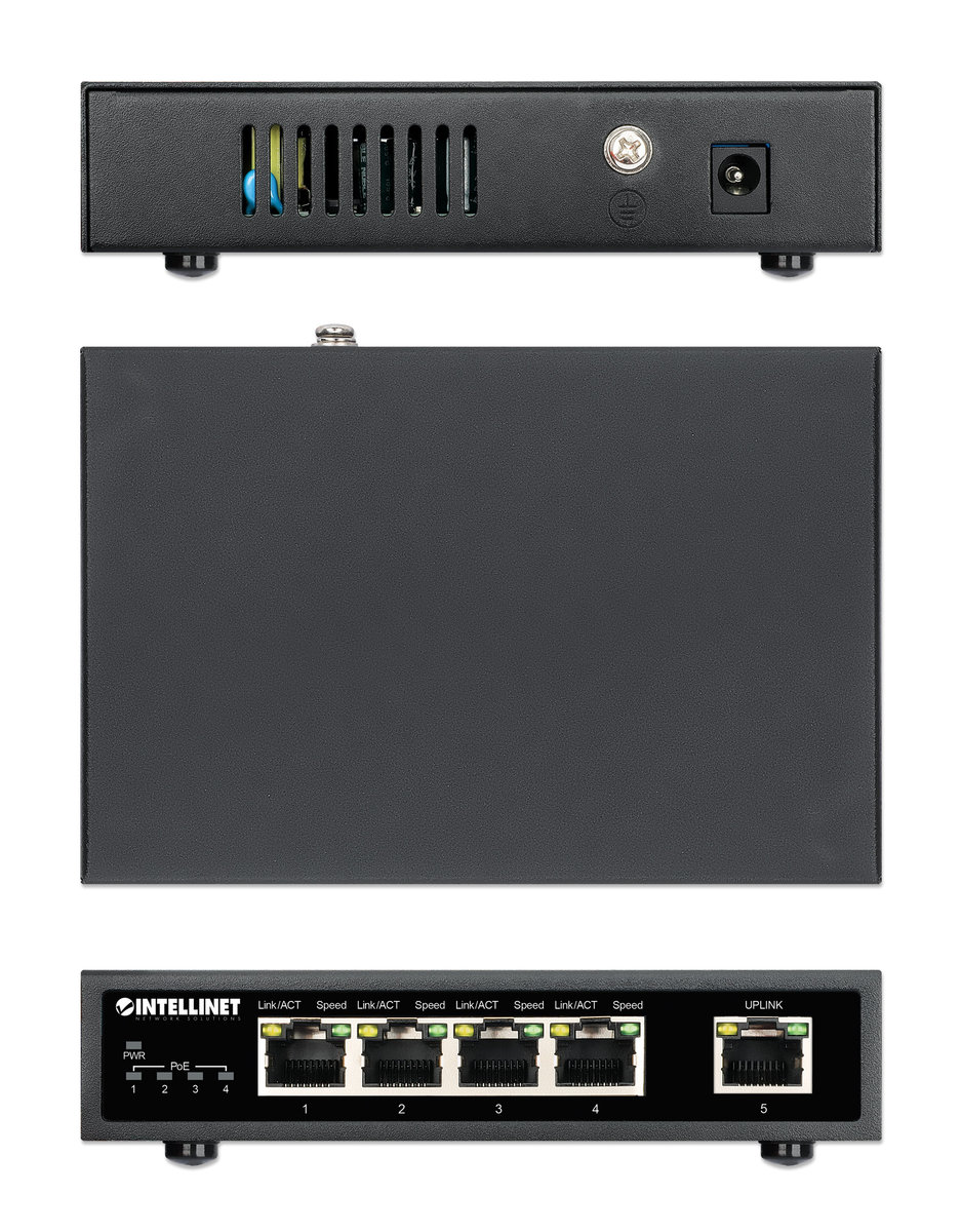 Switch niezarządzalny Intellinet 4x 10/100/1000 Mbps PoE+, 1x RJ45 Uplink, desktop
