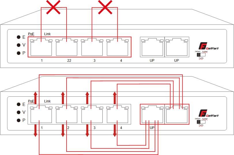 - Switch GetFort GF-106D-4P-65 to 6-portowy niezarządzalny przełącznik 10 / 100Mbps, który nie wymaga konfiguracji i zapewnia 4 porty PoE.