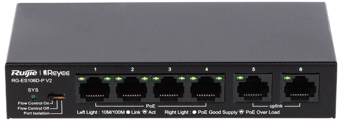 | Nazwa: | SWITCH POE RG-ES106D-P-V2 4-PORTOWY REYEE |