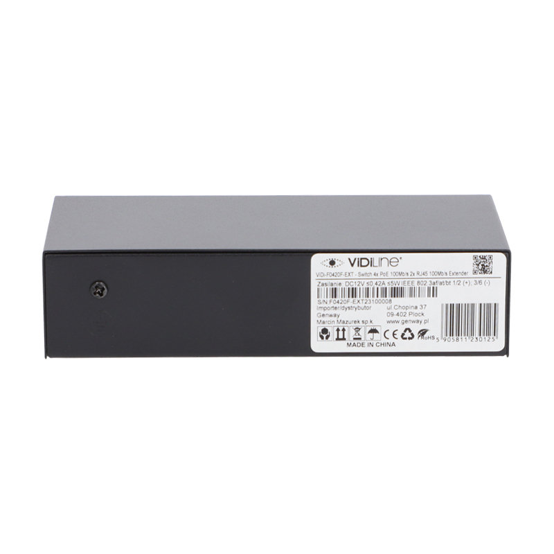 VIDI-F0420F-EXT Switch 4x PoE 2x RJ45 100Mb/s Ext