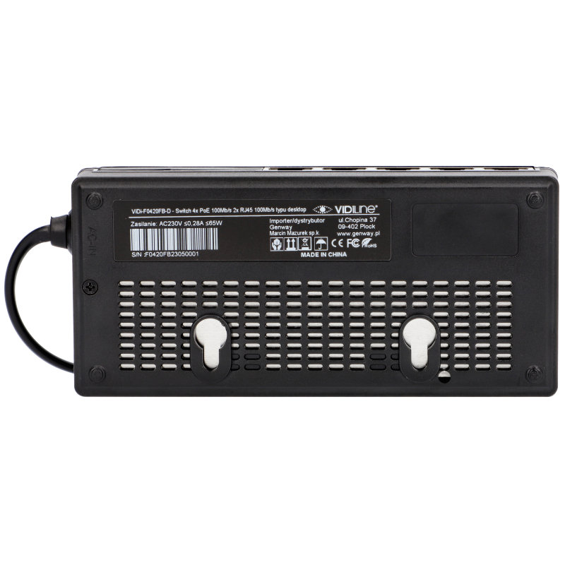 | Nazwa: | Switch Vidiline Desktop PoE 4x 100Mb/s Uplink 1x 100Mb/s 65W VIDI-F0420FB-D |