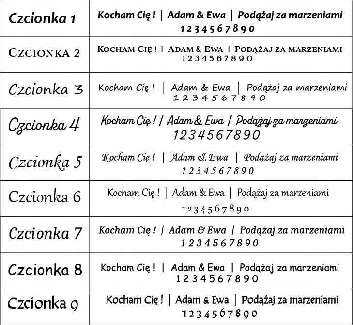 Lista czcionek i symboli widoczna jest w galerii zdjęć produktu.