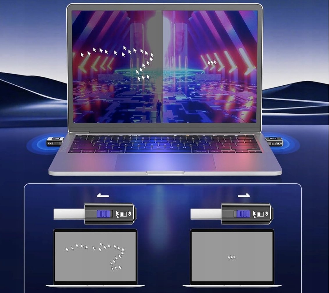 ➡️ Mouse Jiggler posiada porty USB-A i USB-C, dzięki czemu pasuje do większości komputerów, laptopów i stacji dokujących. Niezależnie od systemu operacyjnego czy rodzaju myszy, urządzenie działa niezawodnie i bezproblemowo. Twój sprzęt pozostaje aktywny przez cały dzień pracy lub pobierania dużych plików.