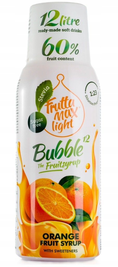Syrop FruttaMax POMARAŃCZA LIGHT Koncentrat 500 ml na 12L BEZ CUKRU Fruttamax syrop Pomarańcza Light - 500 ml. FruttaMax Light to przełomowa seria owocowych syropów, ze względu na brak cukru w ich ...