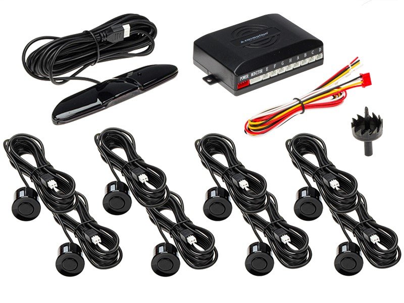 Właśnie zrecenzowałem System wspomagania parkowania z wyświetlaczem LED, 8 czarnych sensorów - przód i tył