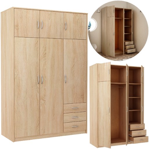 Właśnie zrecenzowałem Szafa duża dąb sonoma SZ03 193x127x55 cm, nowoczesna i pojemna, 6-drzwiowa z 5 półkami, 3 szufladami i drążkiem na ubrania, laminowana, matowa, do sypialni, salonu i garderoby