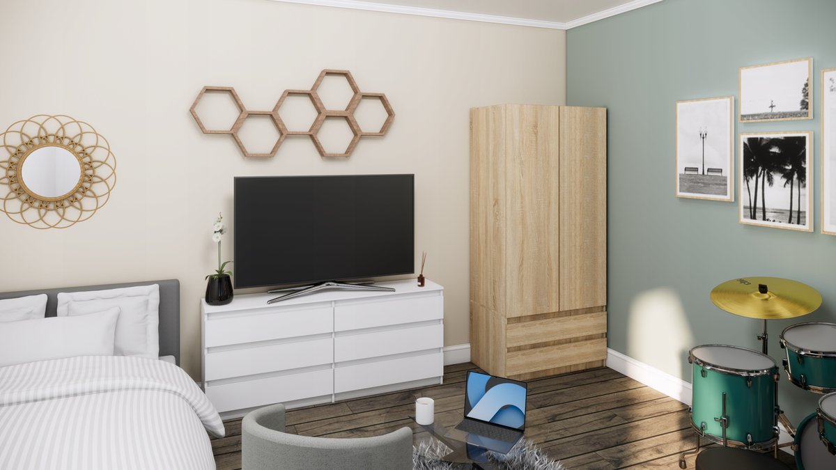 Ta dwudrzwiowa szafa to praktyczne rozwiązanie do przechowywania ubrań i innych przedmiotów w Twoim domu. Wykonana z trwałej płyty meblowej, prezentuje się elegancko i pasuje do różnych stylów aranżacji wnętrz. Dwie szerokie szuflady na dole zapewniają dodatkową przestrzeń do przechowywania drobnych przedmiotów, jak np. bielizna czy akcesoria.