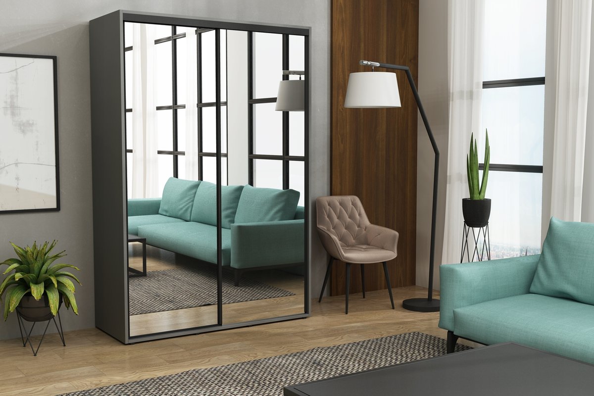 | Nazwa: | Szafa Przesuwna Iga Czarne Okucia 2 LUSTRA 200 x 242 Antracyt Pojemna |