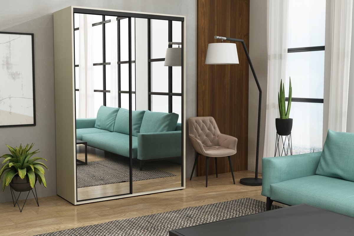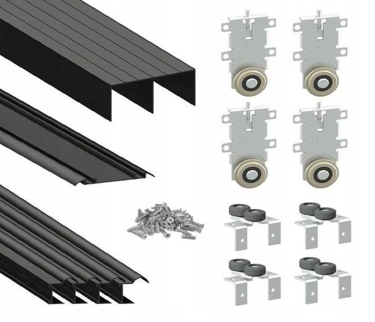 Drzwi szafy przesuwają się na kółkach z łożyskami w aluminiowych torach , co zapewnia płynne i ciche działanie. Drzwi są wyposażone w aluminiowe rączki, które ułatwiają ich otwieranie i zamykanie.