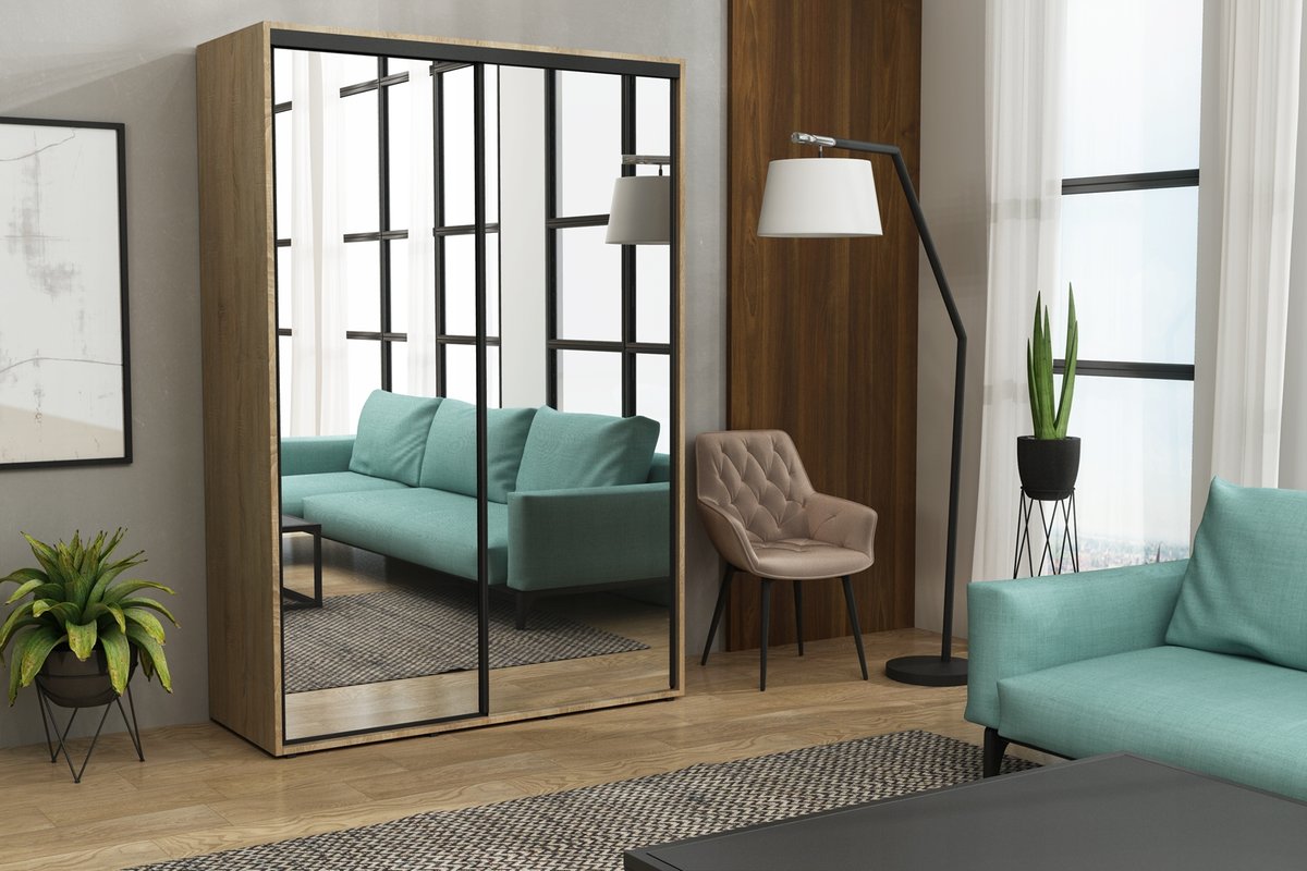 Szafa Iga to wysoka i pojemna szafa z drzwiami przesuwnymi, która jest idealna dla osób które potrzebują dużo miejsca na przechowywanie swoich rzeczy. Szerokość szafy jest regulowana co 10 cm, co pozwala na dostosowanie jej do wymiarów pomieszczenia i indywidualnych potrzeb użytkownika.