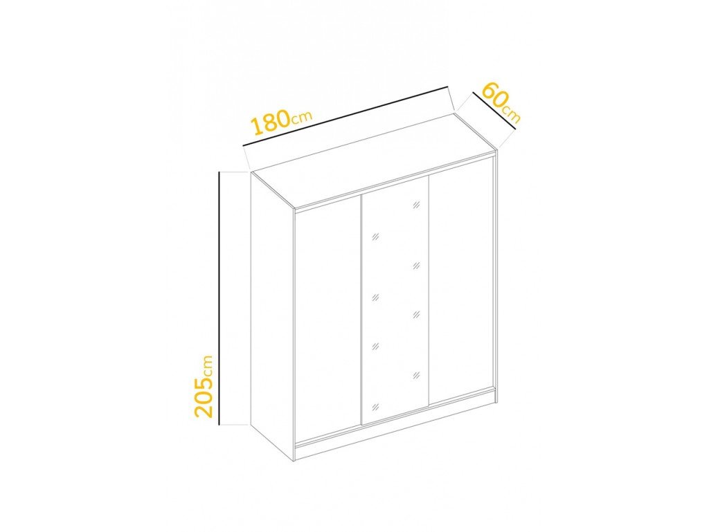 Szafa przesuwna Meblo 2 180Jedyne szafy na rynku o takiej pojemności! ! !Do 20% większa ładowność!Wykonanie:Korpus / fronty / półki - płyta laminowana 16mmOkleina - ABSUchwyty - w formie listwy ...