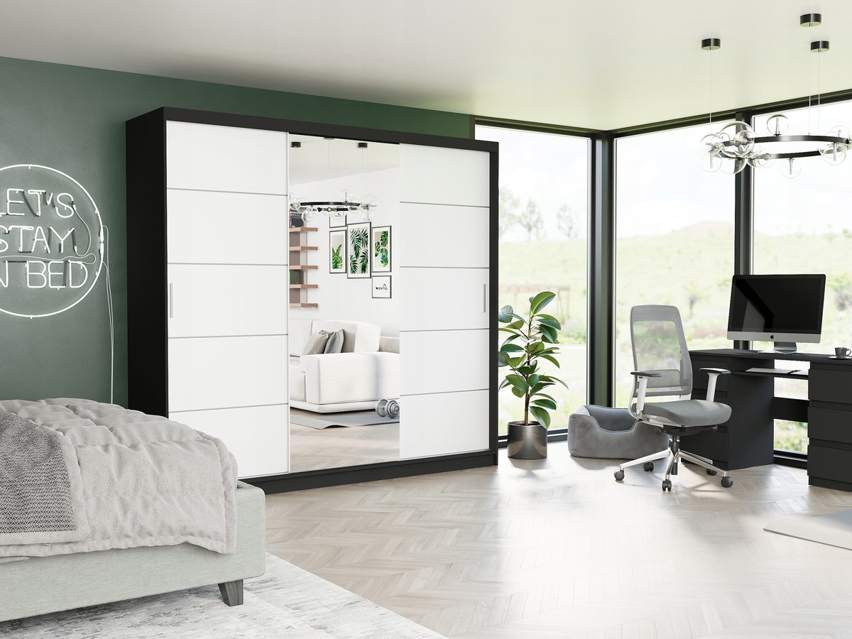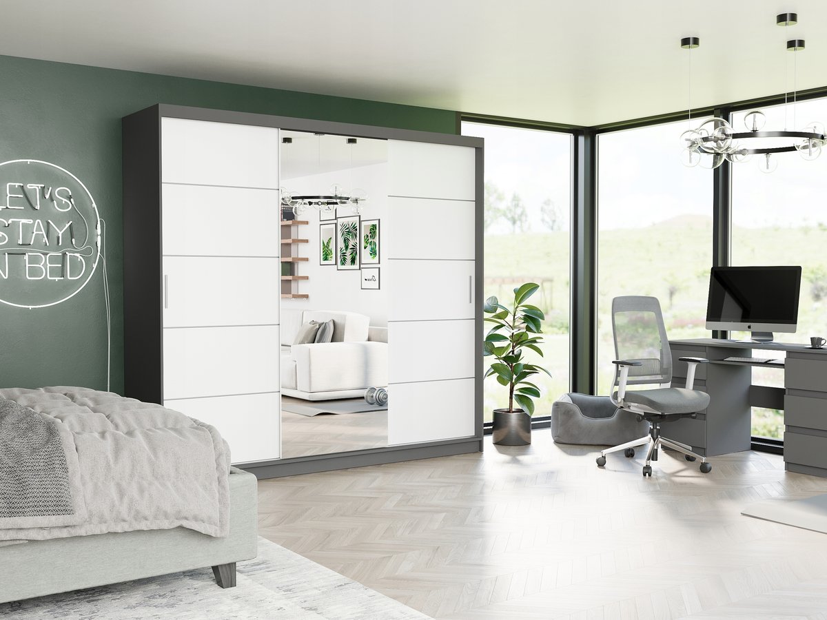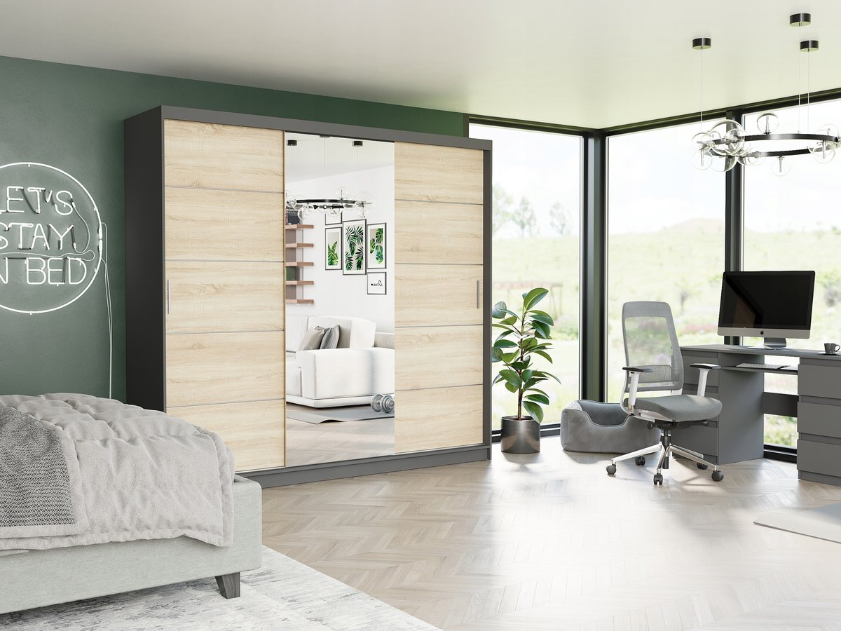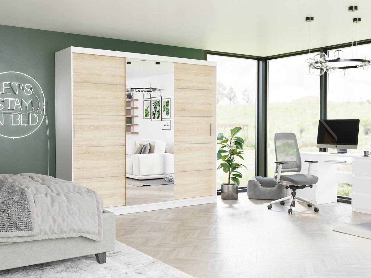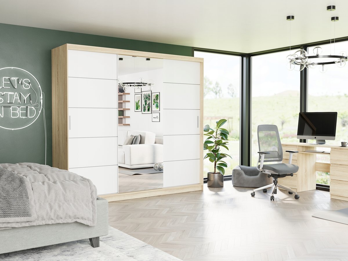 Szafa Selvio I 233 cm to idealne połączenie nowoczesnego designu i praktyczności, które sprawdzi się zarówno w sypialni, garderobie, jak i przedpokoju.