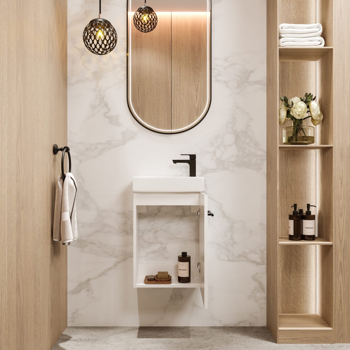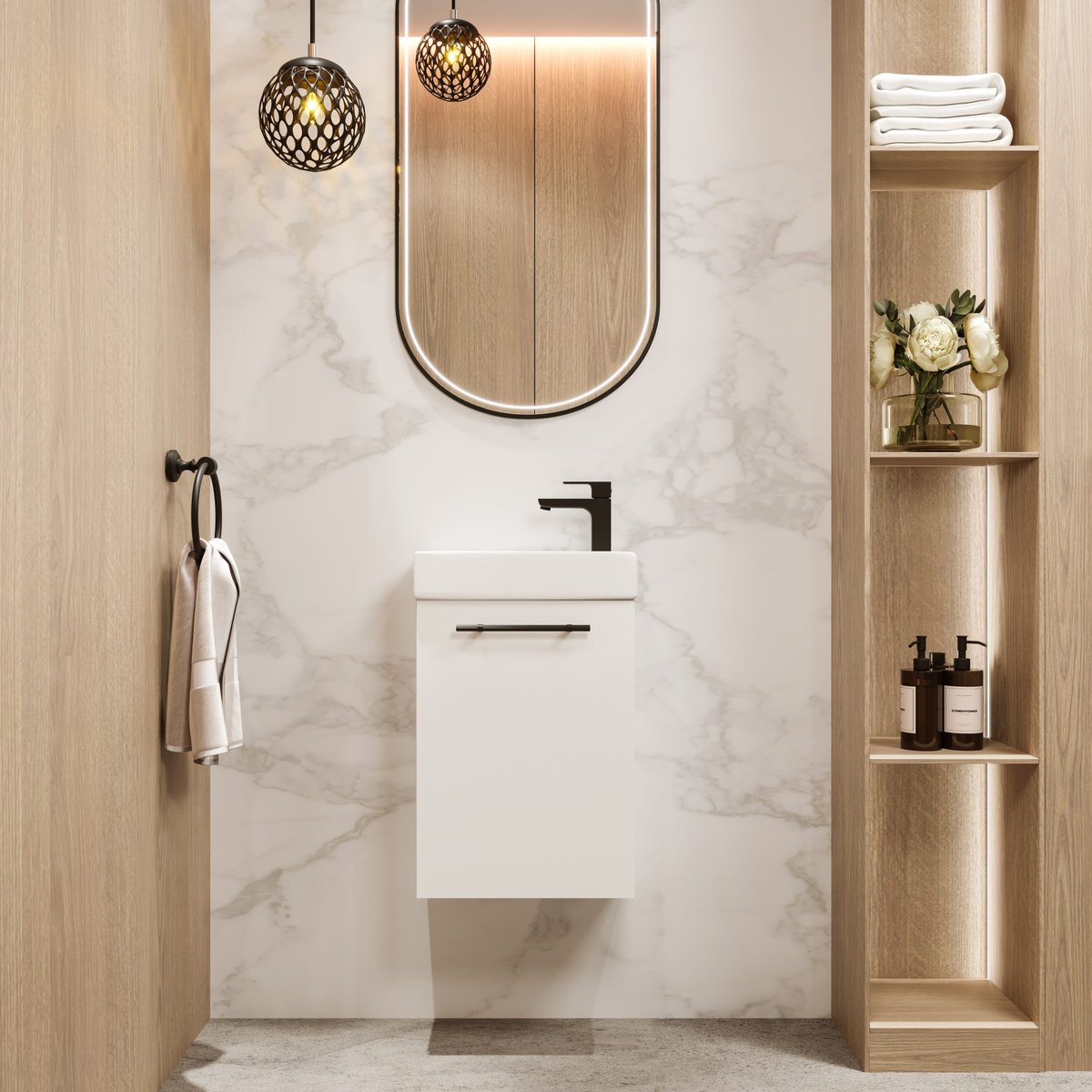 Właśnie zrecenzowałem Szafka Łazienkowa Nava Z Umywalką Ceramiczną 40 Cm, Drzwi, Wisząca, Biały Mat, Uchwyt Czarny Mat