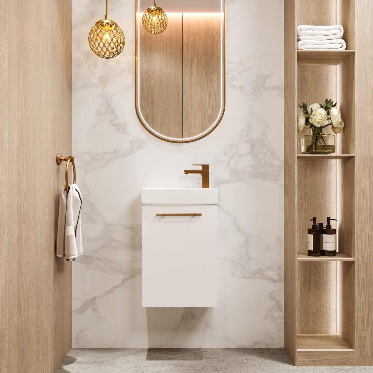 Właśnie zrecenzowałem Szafka Łazienkowa Nava Z Umywalką Ceramiczną 40 Cm, Drzwi, Wisząca, Biały Mat, Uchwyt Złoty