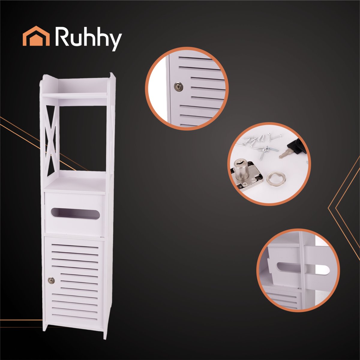 Właśnie zrecenzowałem Szafka Łazienkowa Stojąca Z Uchwytem Na Papier Toaletowy, Zamykana Na Klucz, Regał Słupek W Białym Kolorze Ruhhy!