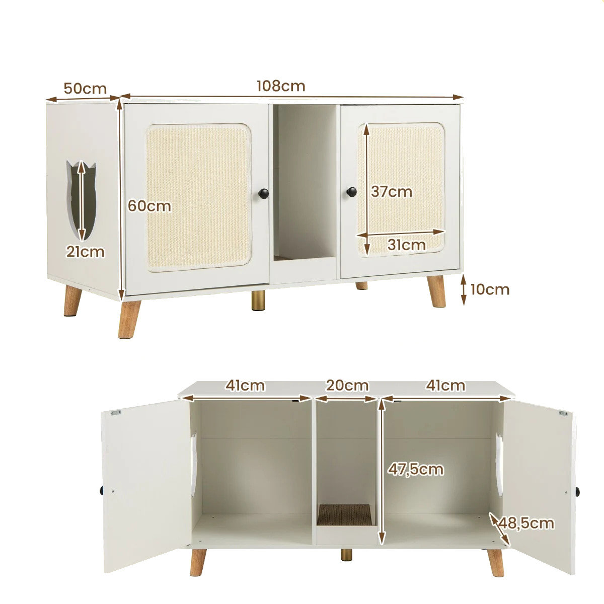 Szafka na kuwetę dla kota Szafka z 2 drzwiczkami Domek dla kotów Biały