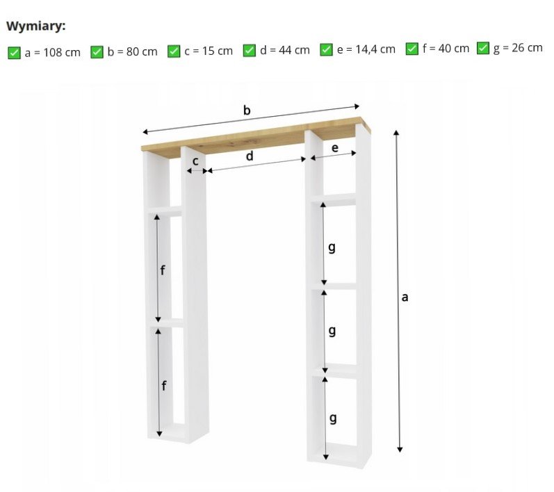 | Nazwa: | Szafka łazienkowa słupek nad toaletę regał biały mat dąb artisan |
