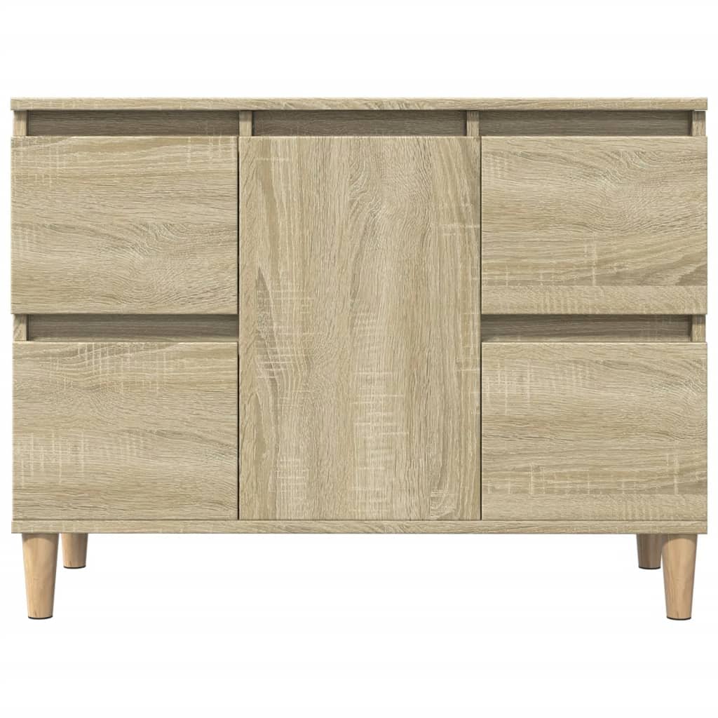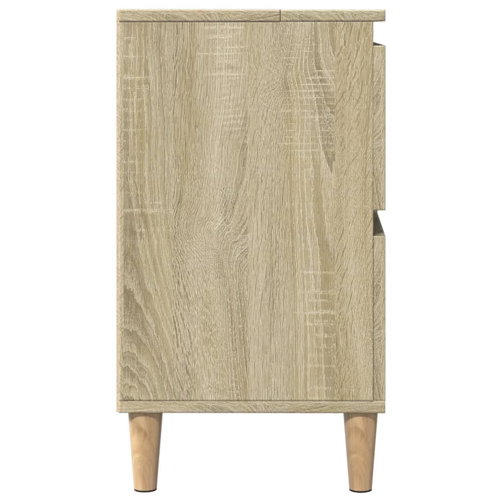 Szafka umywalkowa dąb sonoma - idealne uzupełnienie Twojej łazienki, zapewniające elegancję i funkcjonalność. Wytrzymały materiał: wykonana z materiału drewnopochodnego, który jest nie tylko trwały, ale również odporny na wilgoć, co gwarantuje długotrwałe użytkowanie. Spora przestrzeń do przechowywania: szafka zawiera cztery praktyczne szuflady oraz jedną komorę z drzwiczkami, które pomogą utrzymać porządek w Twojej łazience. Blat szafki jest idealnym miejscem na umywalkę (umywalka nie jest dołączona do oferty). Mocna konstrukcja: nóżki wykonane z litego drewna eukaliptusowego nie tylko pięknie się prezentują, ale również zapewniają stabilność mebla. Łatwość utrzymania: gładka powierzchnia mebla ułatwia czyszczenie - wystarczy wilgotna ściereczka. Ostrzeżenie: dla bezpieczeństwa, szafka powinna być przymocowana do ściany za pomocą dołączonych elementów zabezpieczających. Wymiary całkowite: 80 cm szerokości x 33 cm głębokości x 60 cm wysokości. Montaż szafki jest wymagany. EAN: 8721102808708.