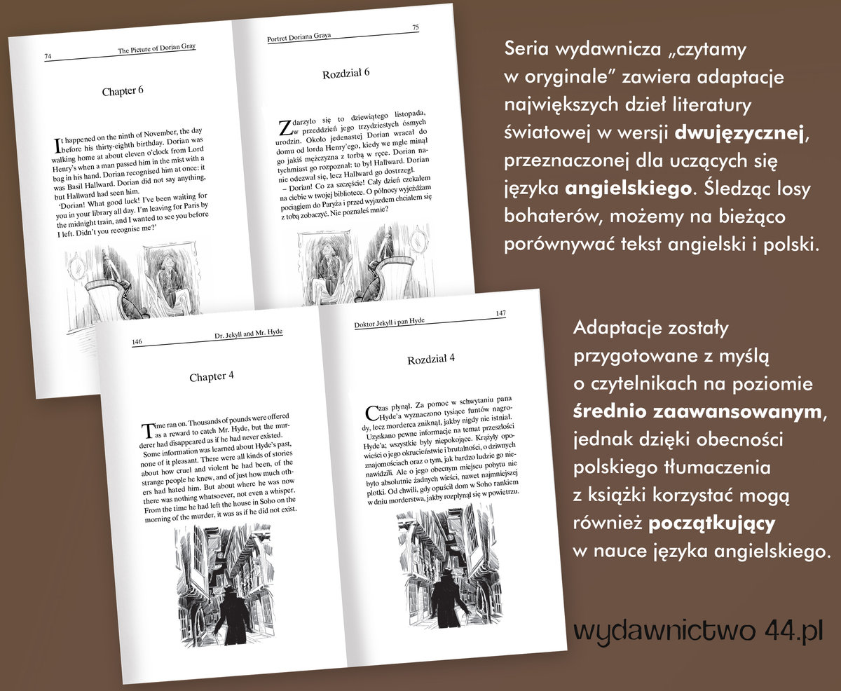 Seria wydawnicza „czytamy w oryginale” zawiera adaptacje największych dzieł literatury światowej w wersji dwujęzycznej, przeznaczonej dla uczących się języka angielskiego. Śledząc losy bohaterów, możemy na bieżąco porównywać tekst angielski i polski.