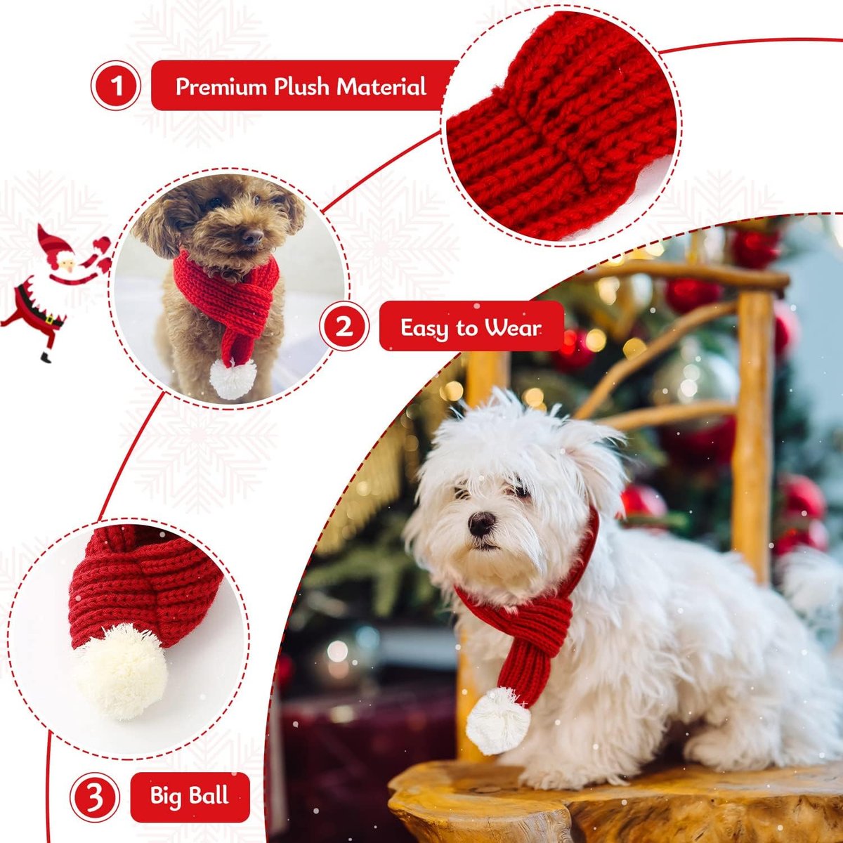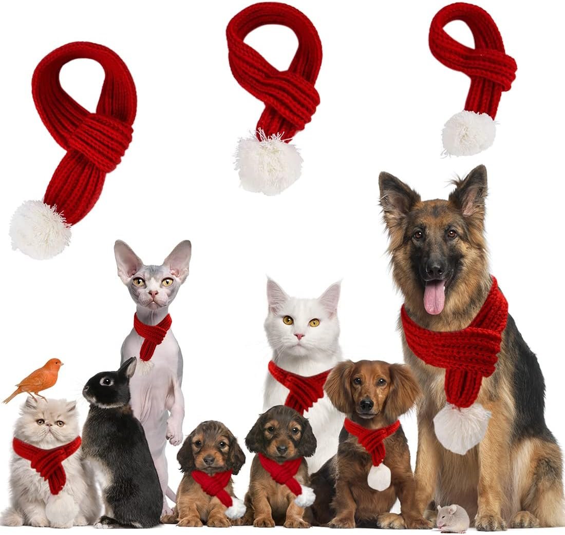 Świąteczny szalik dla psów i kotów - Opakowanie zawiera trzy różne rozmiary czerwonego, dzianinowego szalika dla zwierząt z elementami świątecznymi. 3-częściowy świąteczny szalik dla psów i kotów, odpowiedni dla dużych, średnich i małych kotów i psów.