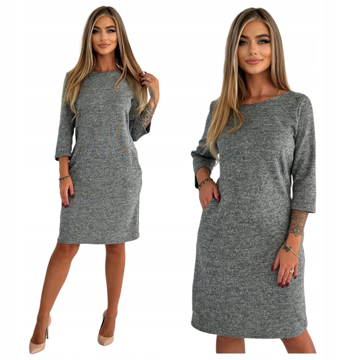 Właśnie zrecenzowałem Szara Sweterkowa Sukienka z Kieszeniami Rozmiar 46 Polski Producent