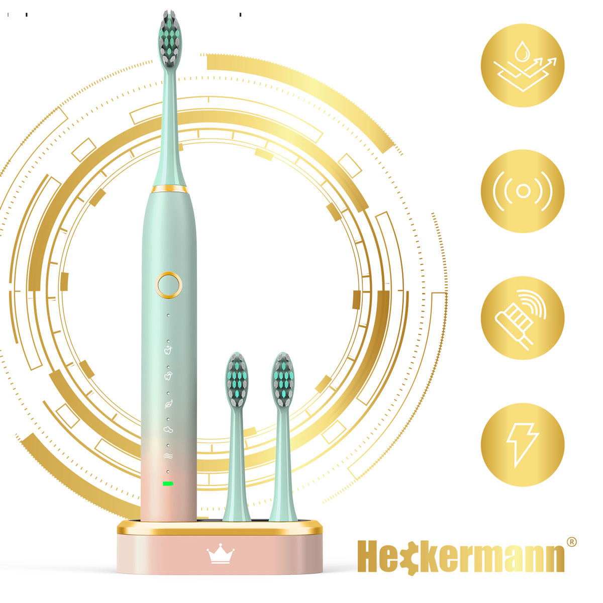 | Nazwa: | Szczoteczka elektryczna do zębów + akcesoria Heckermann® A6S+PLUS - Miętowa |