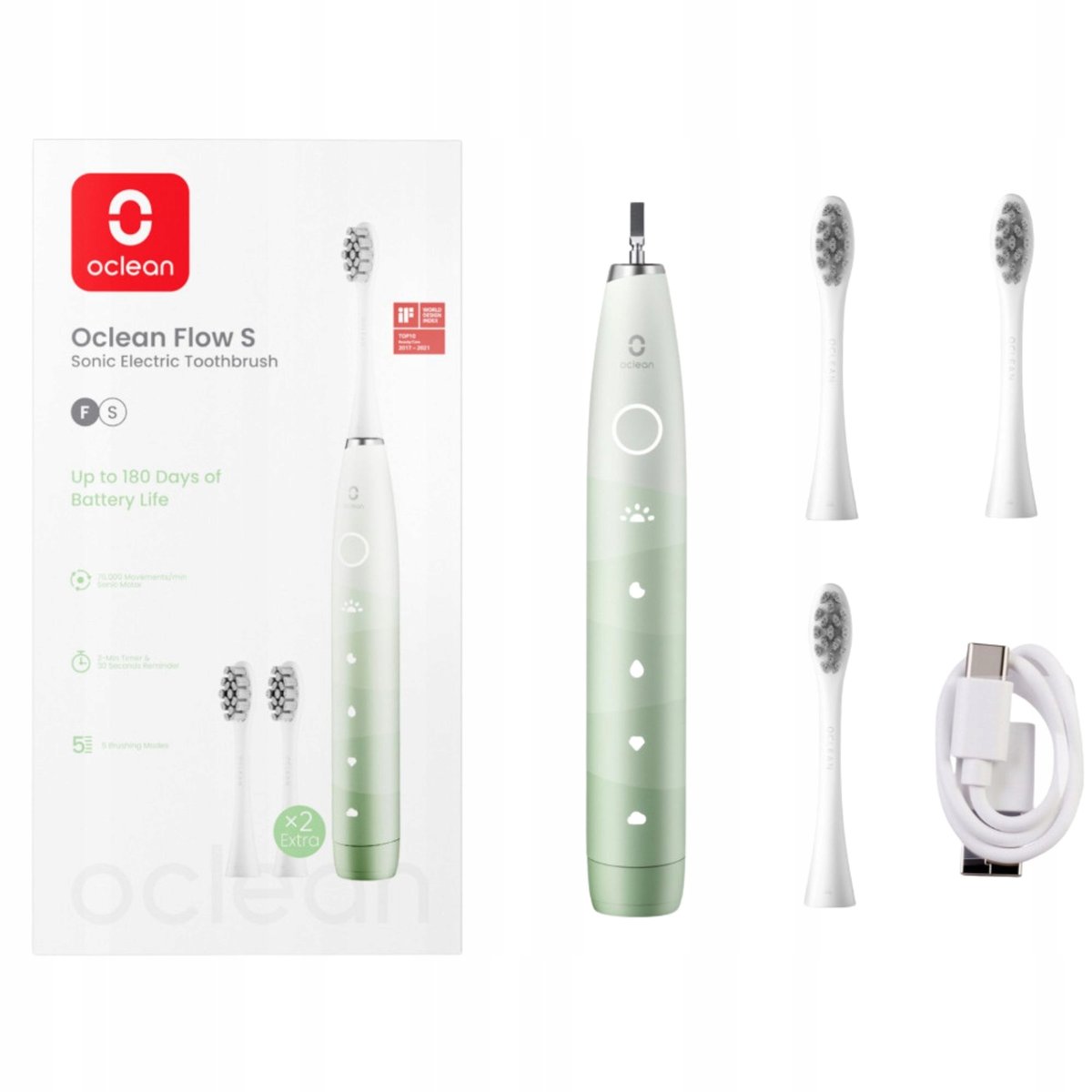 | Nazwa: | Szczoteczka soniczna do zębów OCLEAN Flow S 3 końcówki Zielona |