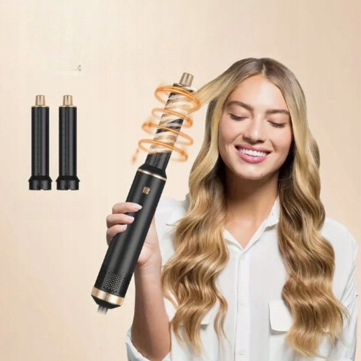 Ta szczotka to prawdziwy kombajn do stylizacji! � Dzięki 5 różnym końcówkom, możesz używać jej jako suszarę do włosów, prostownicę, lokówkę oraz szczotkę wygładzającą i nadającą objętość. ?? Bez względu na to, czy chcesz idealnie proste włosy, luźne fale czy eleganckie loki – to urządzenie Ci w tym pomoże! ?✨