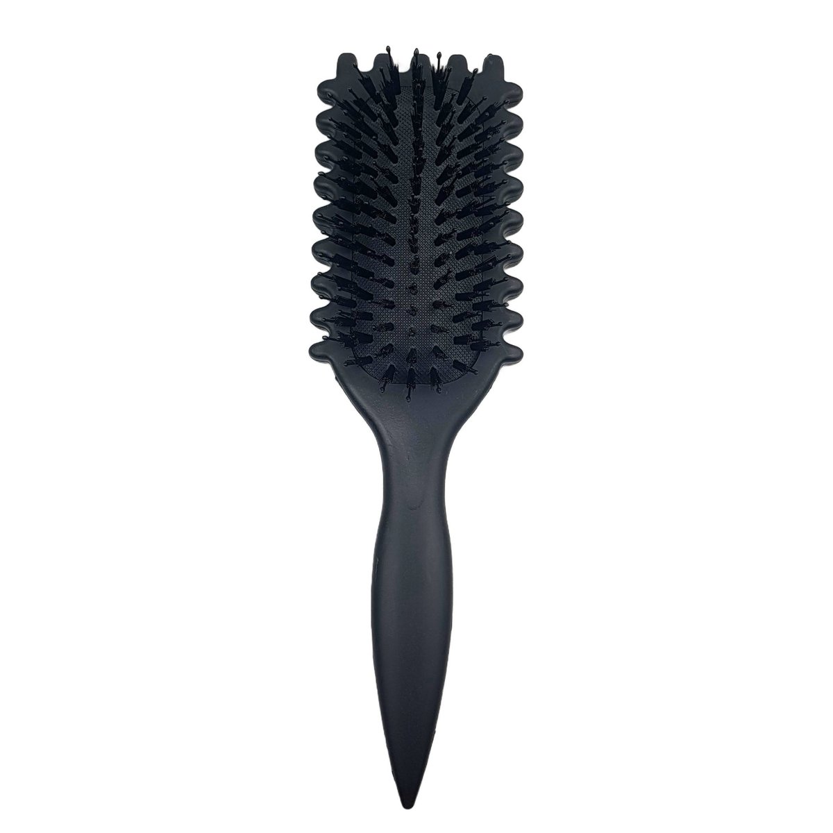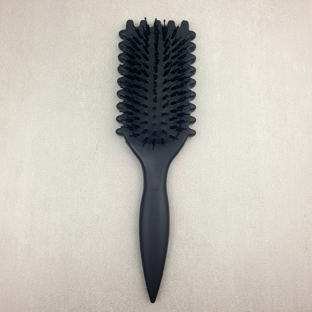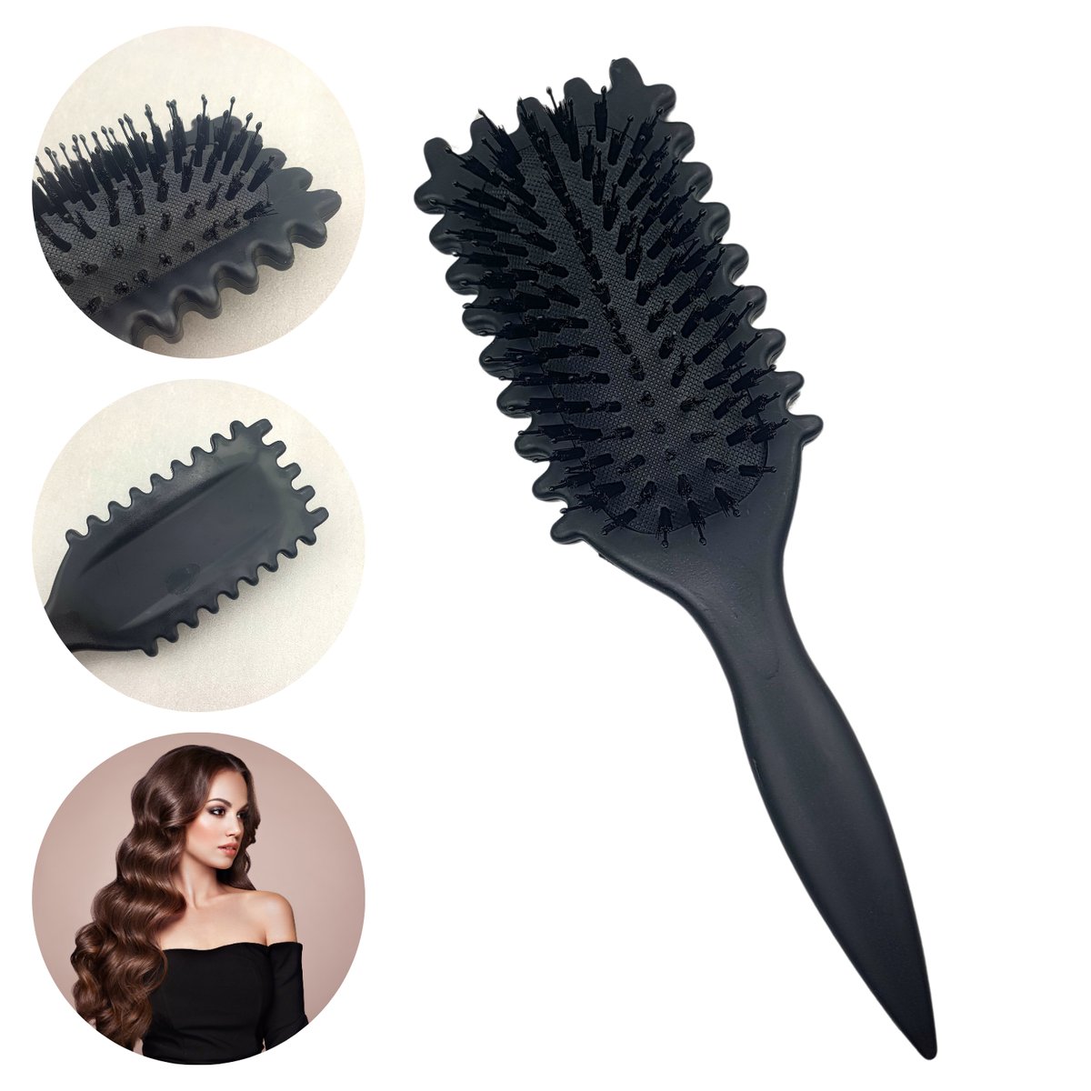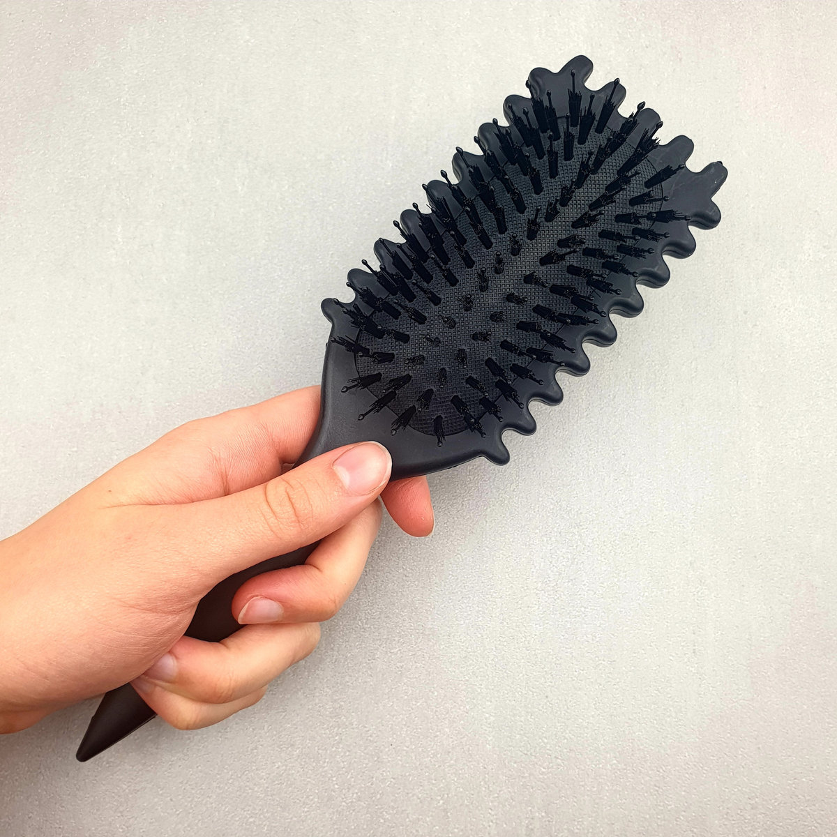 Dzięki naszym czarnym szczotkom do loków Twój fryzjer zyska nowy wymiar stylizacji. Loki i fale to nieodłączny element zarówno klasy, jak i nowoczesnego stylu. Szczotka do włosów kręconych to specjalistyczne narzędzie, zaprojektowane do pielęgnacji i rozczesywania pasm bez naruszania ich struktury. Dzięki elastycznym włosom i miękkim ząbkom, efektywnie rozplątuje włosy, unikając ich puszenia się i łamania. Miękkie kuleczki ochronne na końcówkach ząbków chronią skórę głowy i delikatnie masują, wspierając zdrowie Twoich włosów.