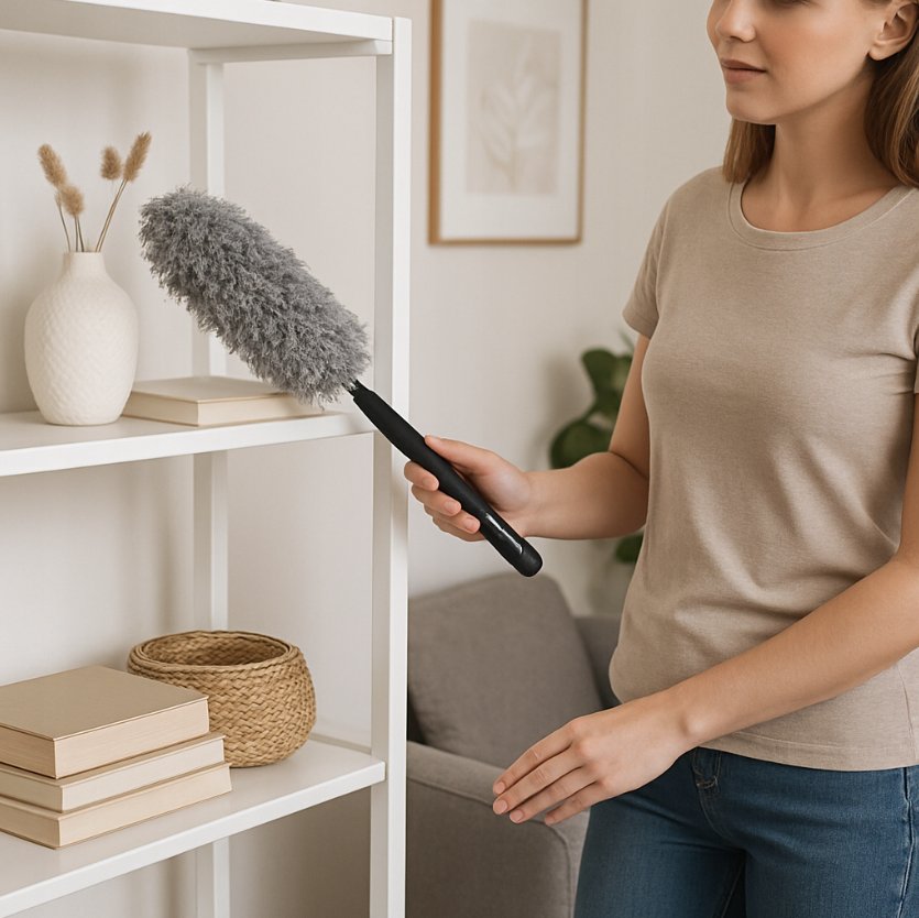 Głowica wykonana z delikatnej, a zarazem bardzo skutecznej mikrofibry – przyciąga kurz jak magnes, nie rysuje powierzchni i nadaje się do delikatnych przedmiotów, jak ekrany, półki czy ozdoby.