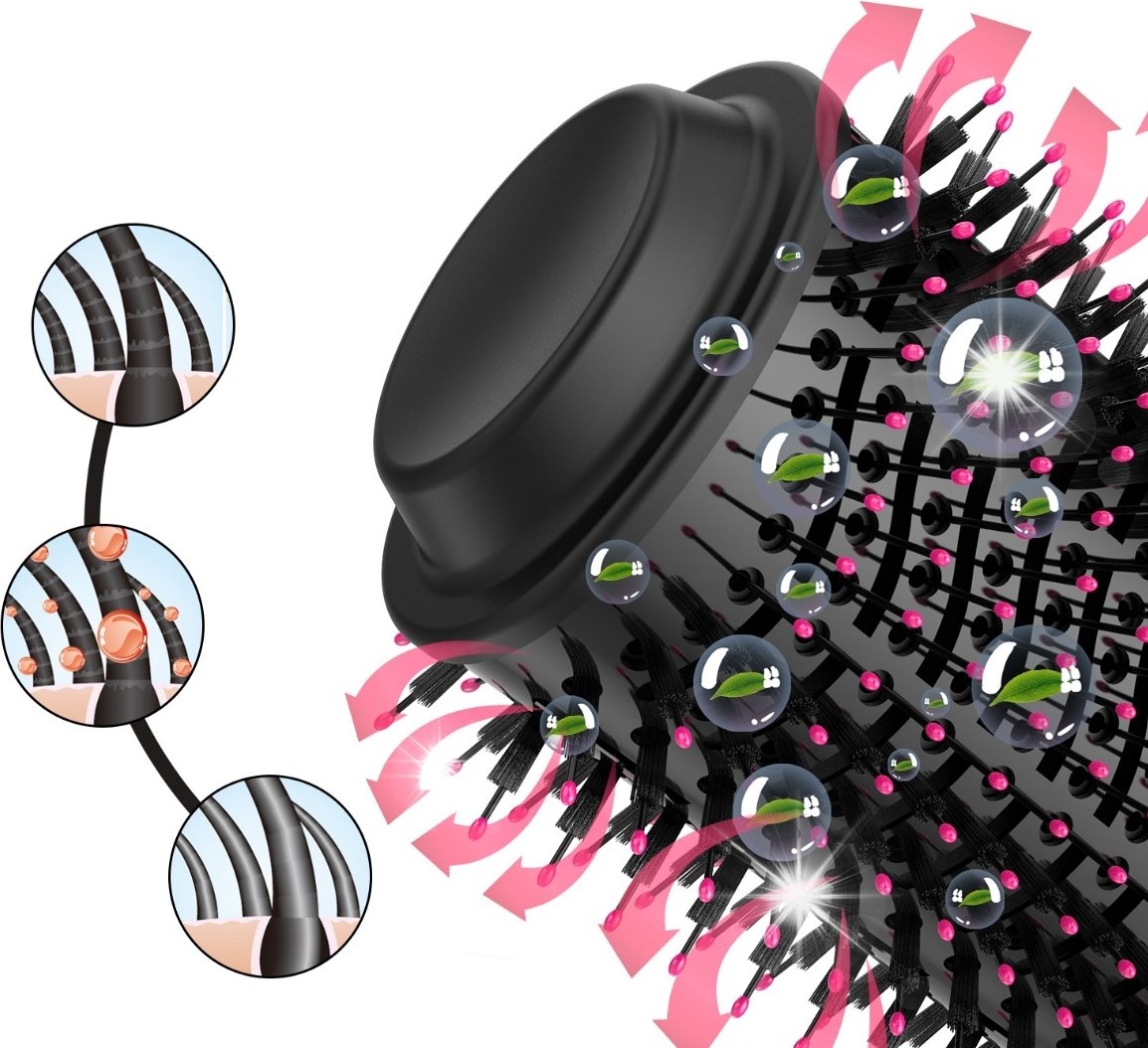 Niezbędnik dla każdej miłośniczki szybkiego i bezproblemowego układania fryzury. Posiada wiele funkcji. Duża szczotka czesze włosy, układa fryzurę. Prostuj włosy na szczotkę lub nakręć loki, fale!