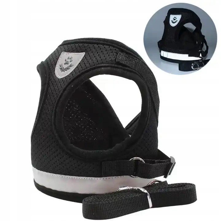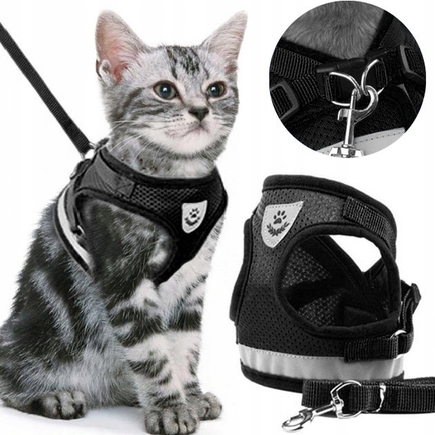 SZELKI BEZUCISKOWE SPACEROWE REGULOWANE ODBLASK DLA KOTA + SMYCZ ROZMIAR M