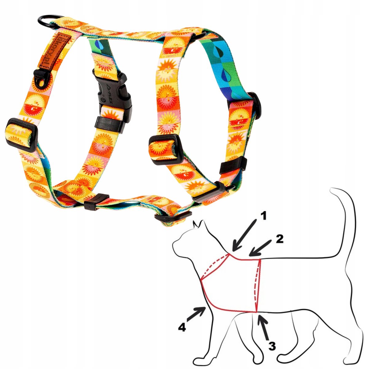 - Czy szelki pasują na każdego kota? Szelki są dostępne w różnych rozmiarach i są regulowane w 4 miejscach, co pozwala na ich dopasowanie do większości kotków.