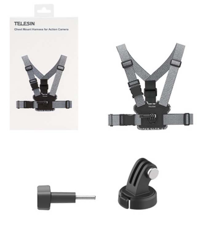Uniwersalne mocowanie na klatkę piersiową - Telesin Wszechstronne mocowanie kamery do ciała Najwyższej jakości mocowanie na klatkę piersiową marki Telesin umożliwiające montaż kamery z ...