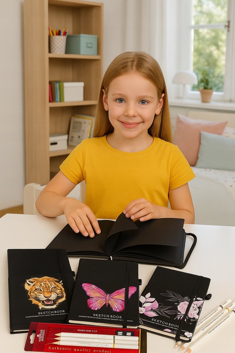 ✅ 1× Szkicownik z czarnym papierem – 80 kartek (okładka losowa)
