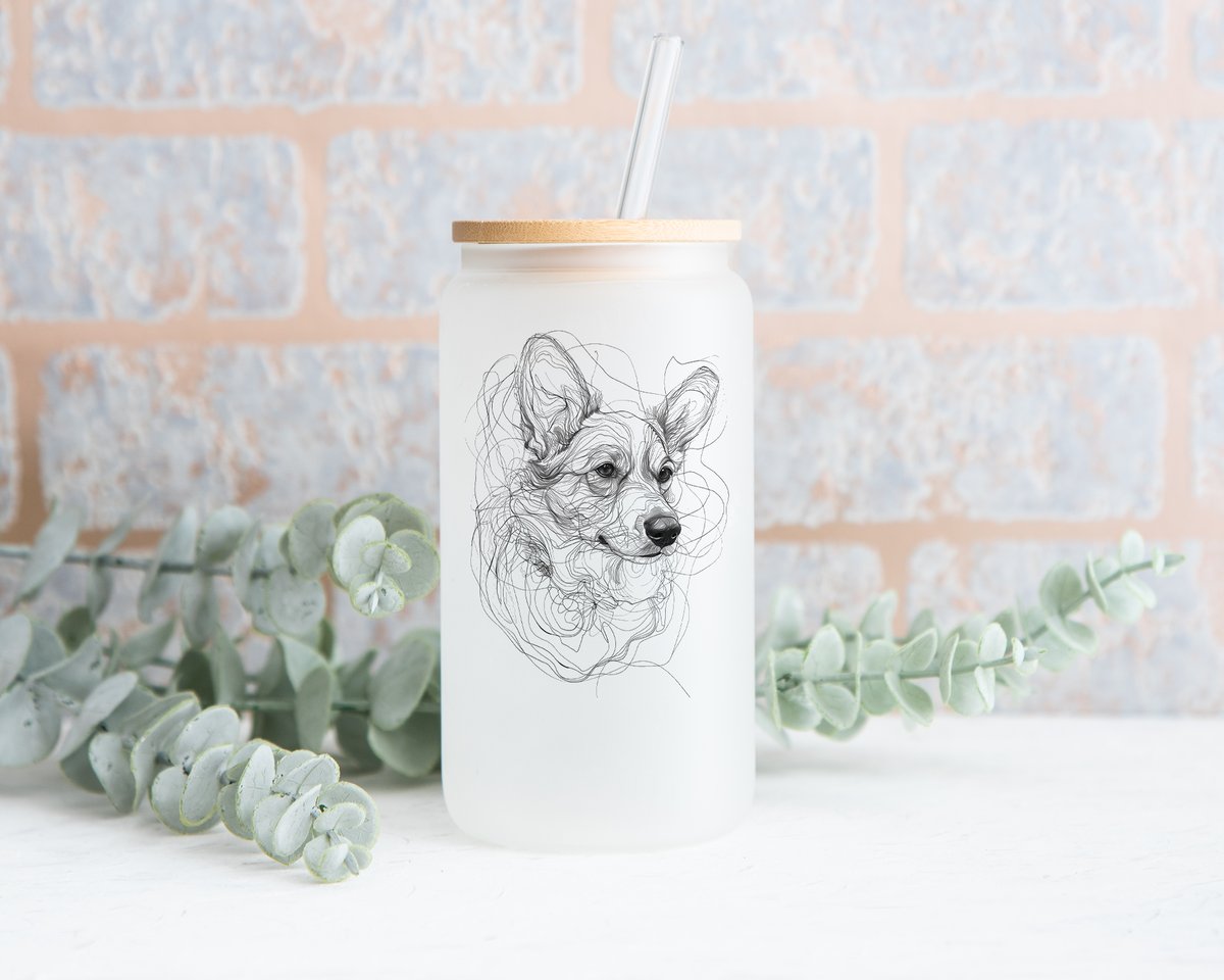 Szklanka z Liniowym Projektem Psa Corgi - Elegancja, Funkcjonalność i Wyjątkowy Styl