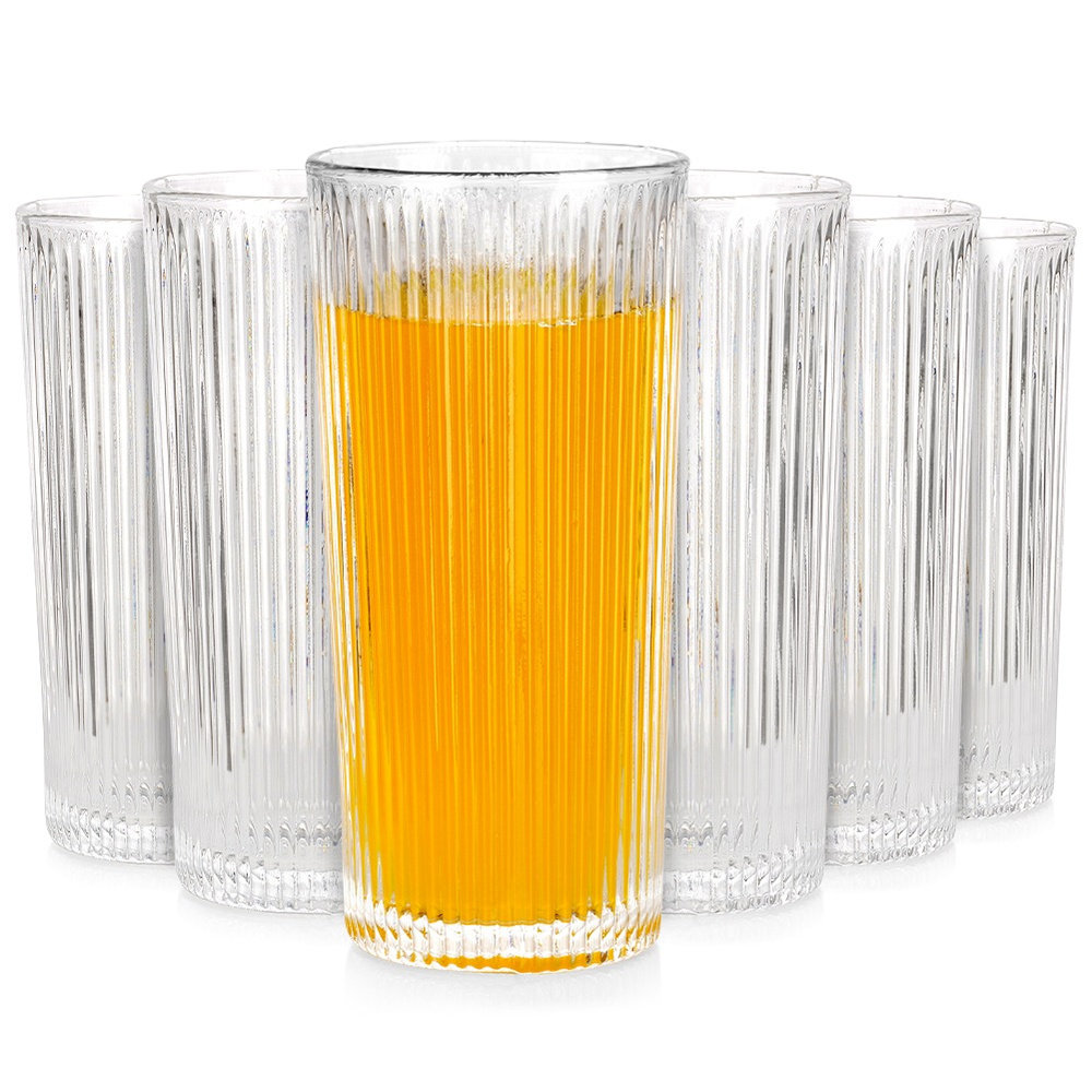✅ Zestaw 6 szt. szklanek o pojemności 320 ml - Komplet sześciu wysokich szklanek do napojów o pojemności całkowitej 320 ml. Wysokość każdej szklanki wynosi 15 cm, a średnica 7,3 cm.