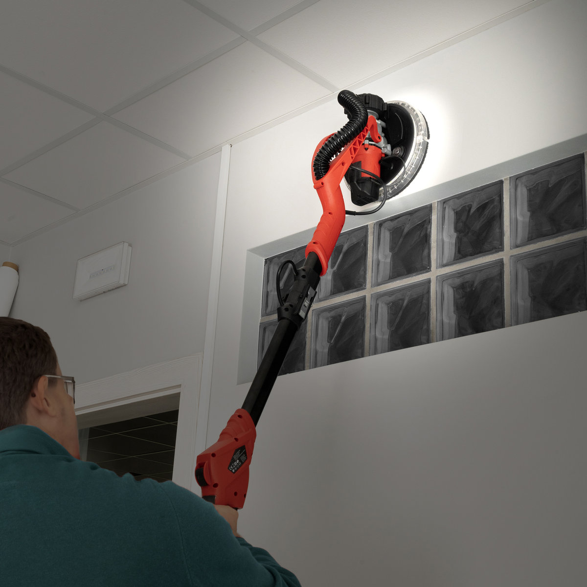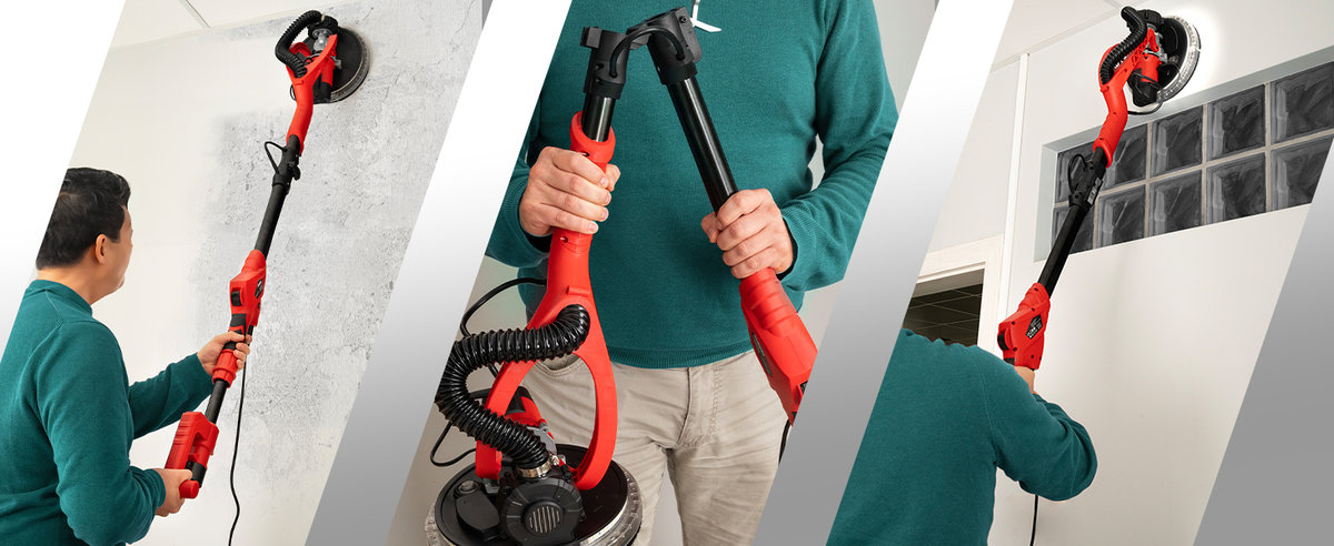 Pozwala dopasować narzędzie do wysokości pomieszczenia i wygodnie szlifować sufity oraz trudno dostępne miejsca bez konieczności używania drabiny, zapewniając pełen komfort pracy.