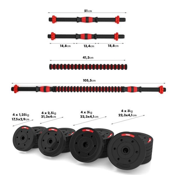 Dzięki specjalnemu przedłużeniu, zyskujemy możliwość złączenia dwóch krótkich gryfów, w jeden długi. To innowacyjne rozwiązanie, znacznie rozszerza wachlarz możliwości ćwiczeniowych. Zyskujemy bowiem sztangę, z którą wykonamy ćwiczenia nie możliwe lub nie wygodne, do wykonania z hantlami. Decydując się na jeden produkt, w rezultacie otrzymujemy dwa. W skład zestawu wchodzą dwa gryfy, cztery zaciski, łączenie dwóch gryfów i łącznie 16 talerzy obciążeniowych. Produkt jest odpowiedni zarówno dla zaawansowanych jak i początkujących użytkowników. Zacznij ćwiczyć już dziś, SGP40 HMS to idealna propozycja dla domowej siłowni.