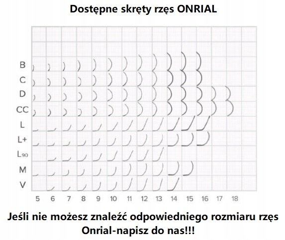Czarne rzęsy ONRIAL dostępne są w dużych paletkach – każda zawiera 21 rzędów rzęs przy szerokości taśmy 42 mm. Ich długość, grubość oraz skręt możesz dopasować do swoich potrzeb. Szeroki wybór modeli sprawia, że z łatwością znajdziesz wariant, którego szukasz. A tym samym – uzupełnisz salonowe regały w wysokiej klasy rzęsy, które zadowolą nawet najbardziej wymagające klientki.